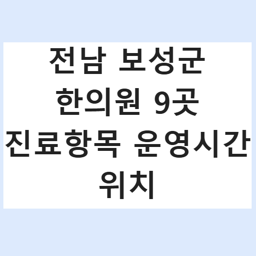 전남 보성군 한의원 9곳 진료항목 운영시간 위치